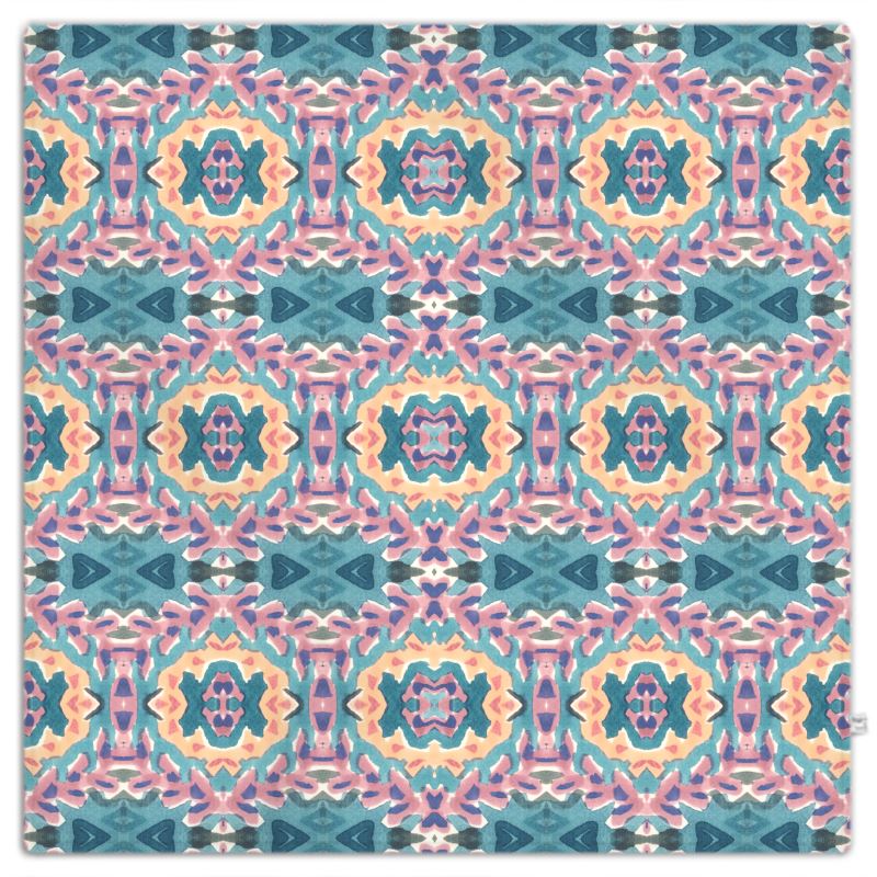 Every blanket is printed, cut and hand-stitched by our master seamstresses, ensuring impeccable quality and a truly bespoke finish. The kaleidoscopic pattern is fused deep into the fleece fibers for lasting color saturation and a touchably plush feel.